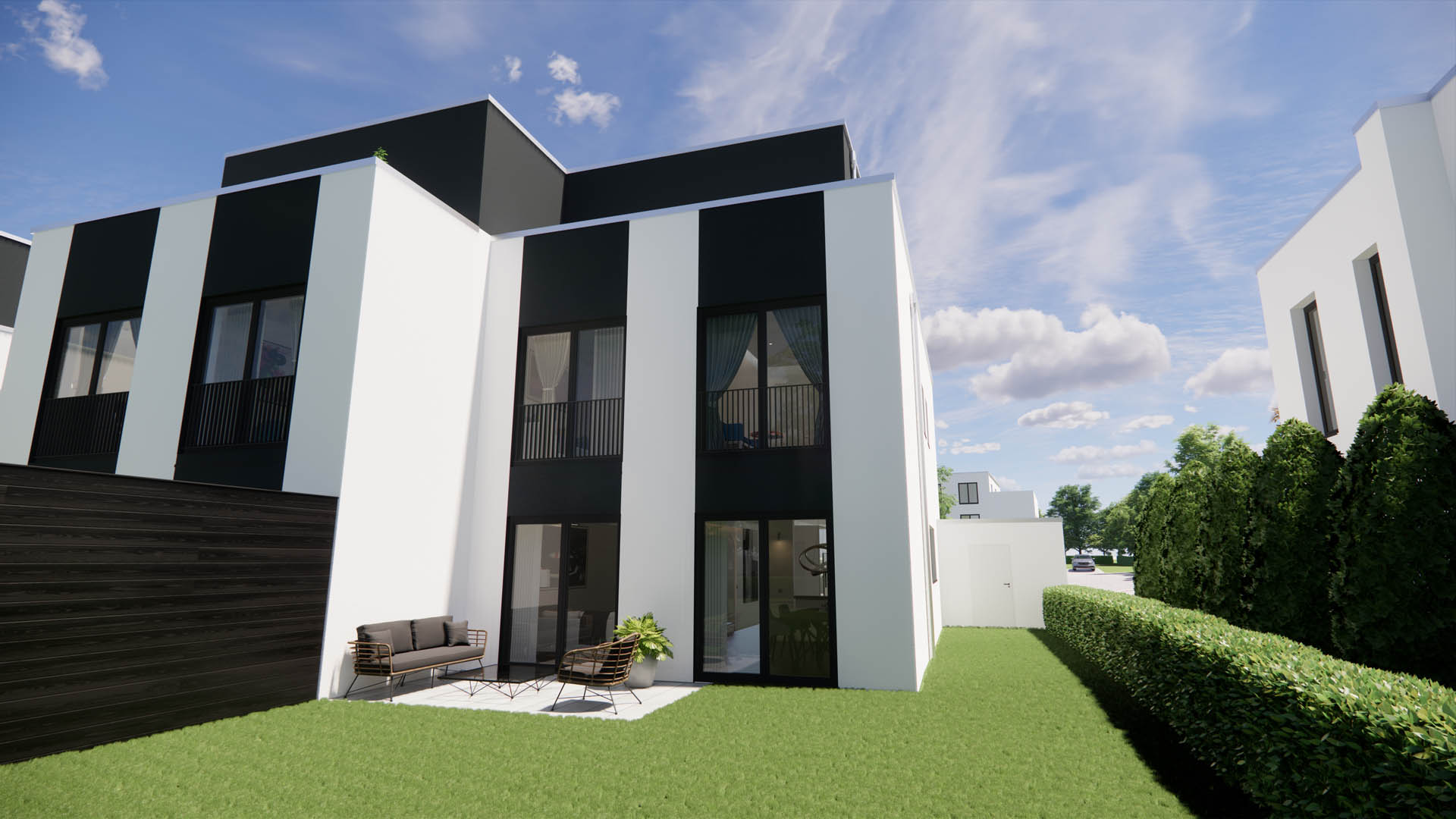 Die Doppelhaushälfte überzeugt mit ihrer modernen und offenen Raumgestaltung im EG sowie der großzügigen und exklusiven Raumaufteilung in den Obergeschossen.