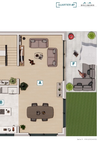 ERDGESCHOSS Grundriss A. WOHNEN/ ESSEN 45,62 m² B. KÜCHE 13,63 m² C. WC C 5,57 m² D. DIELE/ GARDEROBE 15,21 m² E. BÜRO/ GÄSTE F 11,87 m² GESAMT EG 91,90 m² D A F. TERRASSE 18,00 m² B E Seite 10 - ERDGESCHOSS Seite 11 - ERDGESCHOSS