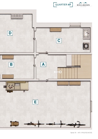 KELLERGESCHOSS Grundriss A. FLUR 4,11 m² D B. LAGER 9,28 m² C C. HAUSWIRTSCHAFTSRAUM 10,60 m² D. HAUSANSCHLUSSRAUM 14,65 m² E. KELLERRAUM 38,57 m² B A GESAMT KELLER 77,21 m² E Seite 14 - KELLERGESCHOSS Seite 15 - KELLERGESCHOSS